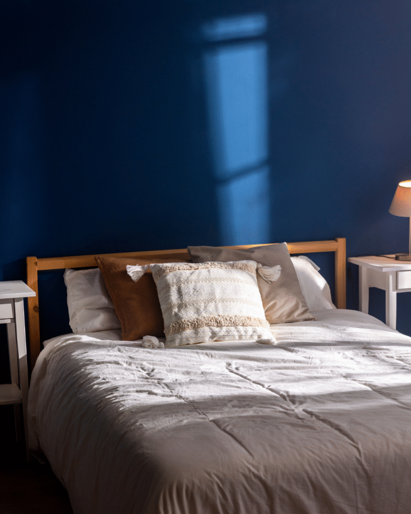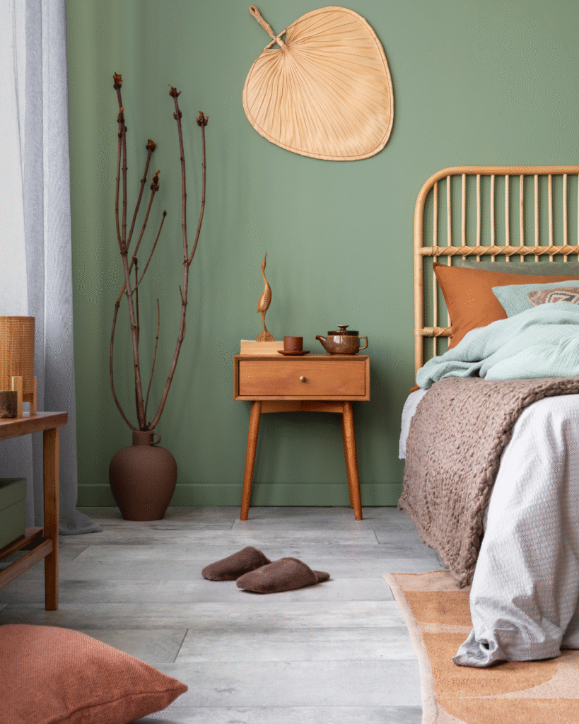 Quarto casal | Azul petróleo + cobre / Verde oliva + terracota |